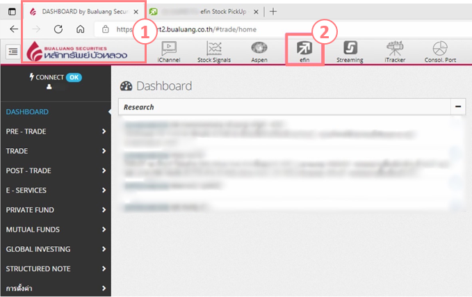 2. เลือกไปที่ efin หรือถ้าเราเป็นสมาชิกแบบชำระเงินก็สามารถ Login ผ่าน efin ได้โดยตรง ไม่ต้องผ่านโบรกเกอร์ก็ได้